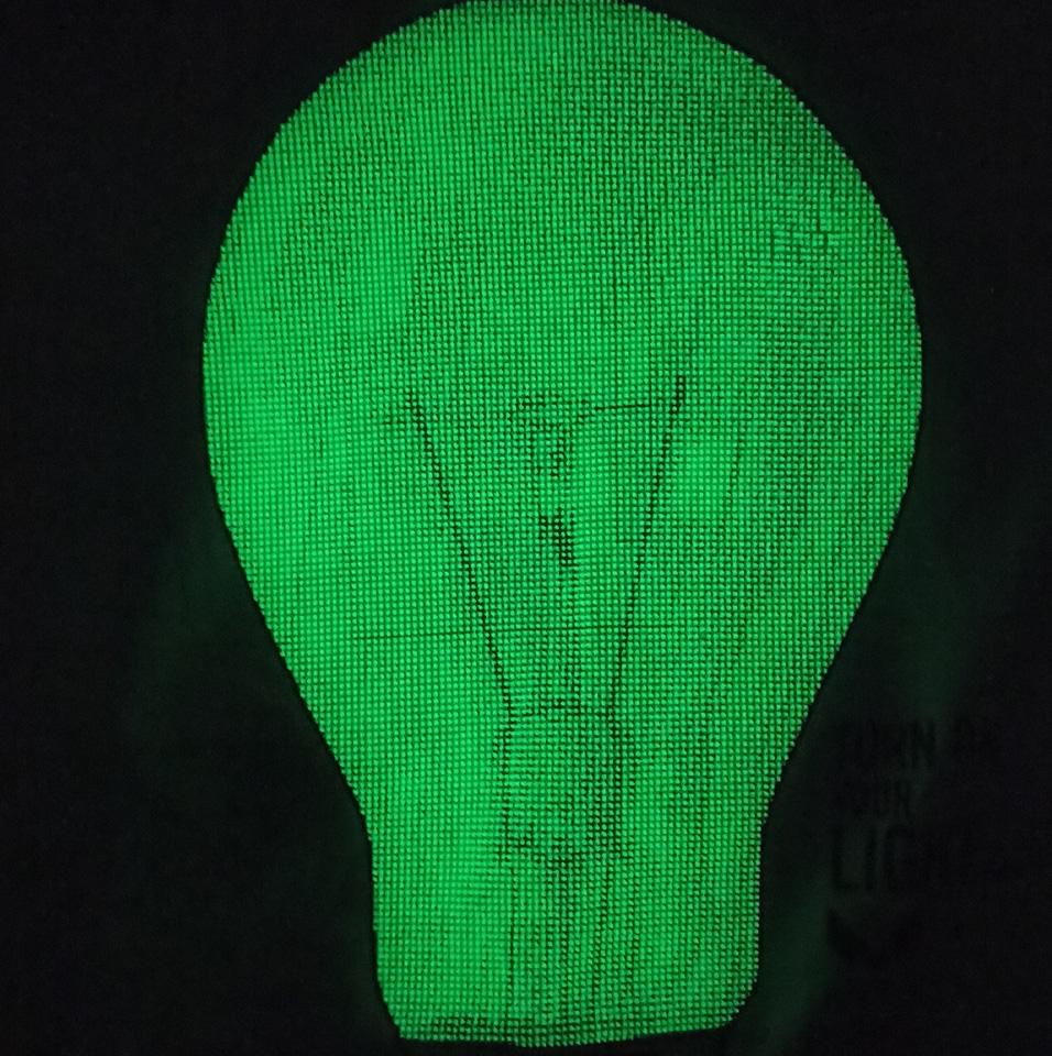 El estampado de esta camiseta carga con la luz y alumbra en la oscuridad.